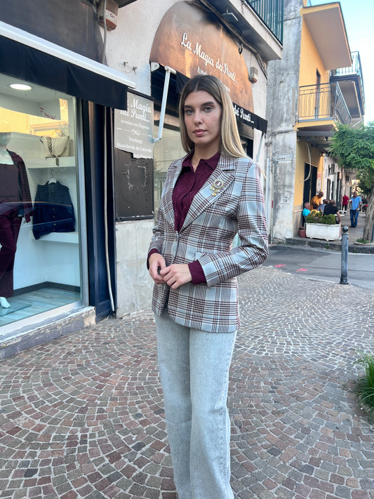 Giacca Tweed a Quadri Imbottita - Vestibilità Over Made in Italy