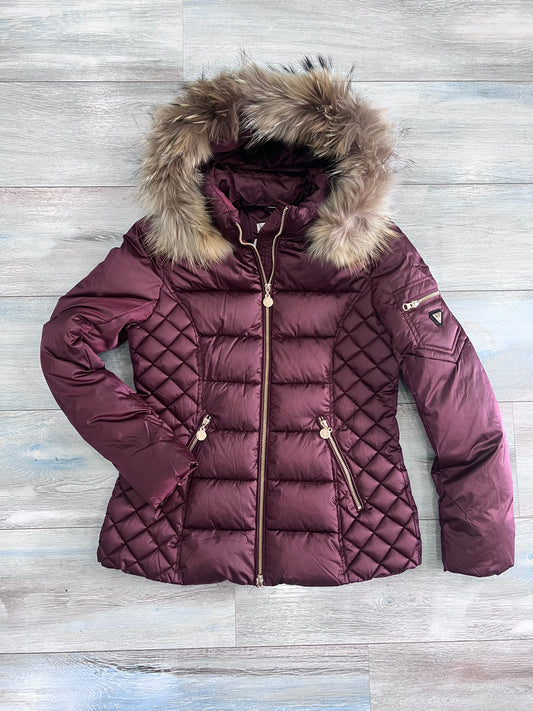 Giubbotto Donna Invernale 638 Bordeaux e Beige con Cappuccio e Pelliccia