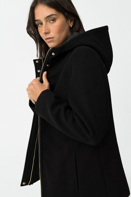 Cappotto Donna Nero Erika Collo Coreana - Vestibilità Avvitata Made in Italy
