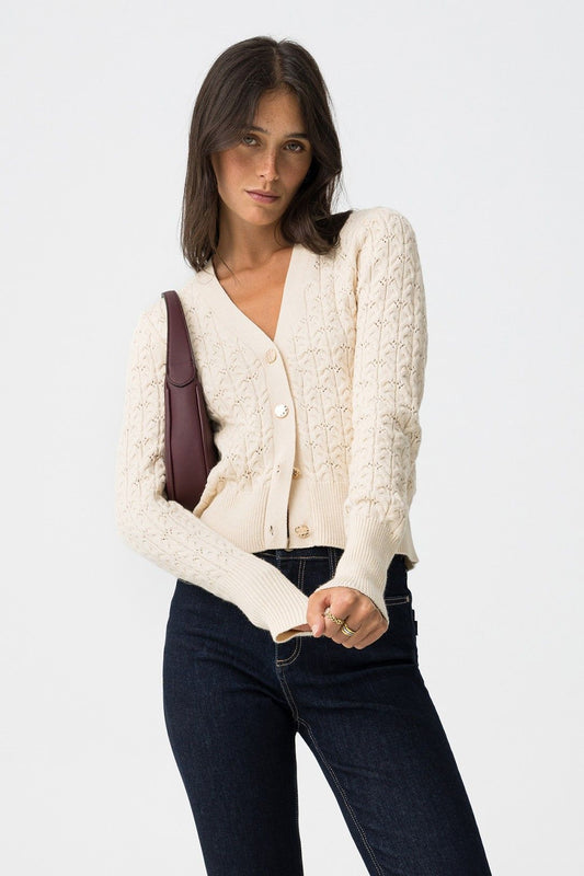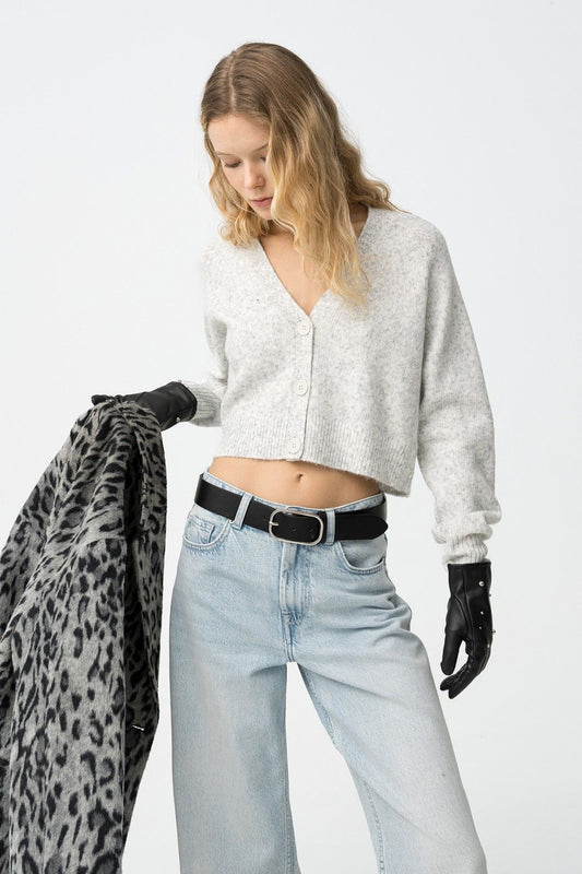 Cardigan Donna Fango Grigio con Bottoni Scollo a V