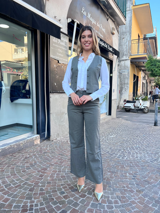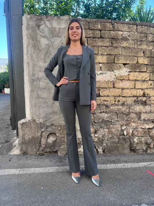 Tailleur 529 | Grigio | Trio | Giacca| Gilet| Pantalone Zampa | Erica Bellucci