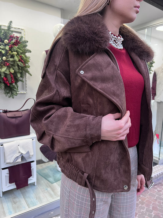 Giubbotto Donna Invernale Scamosciato con Eco Pelliccia - Caldo e Morbido