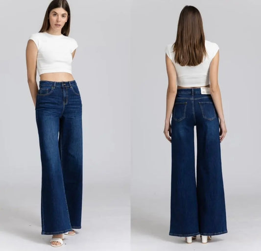 Jeans Bonnye_57| Wide Leg |Nero Lucido