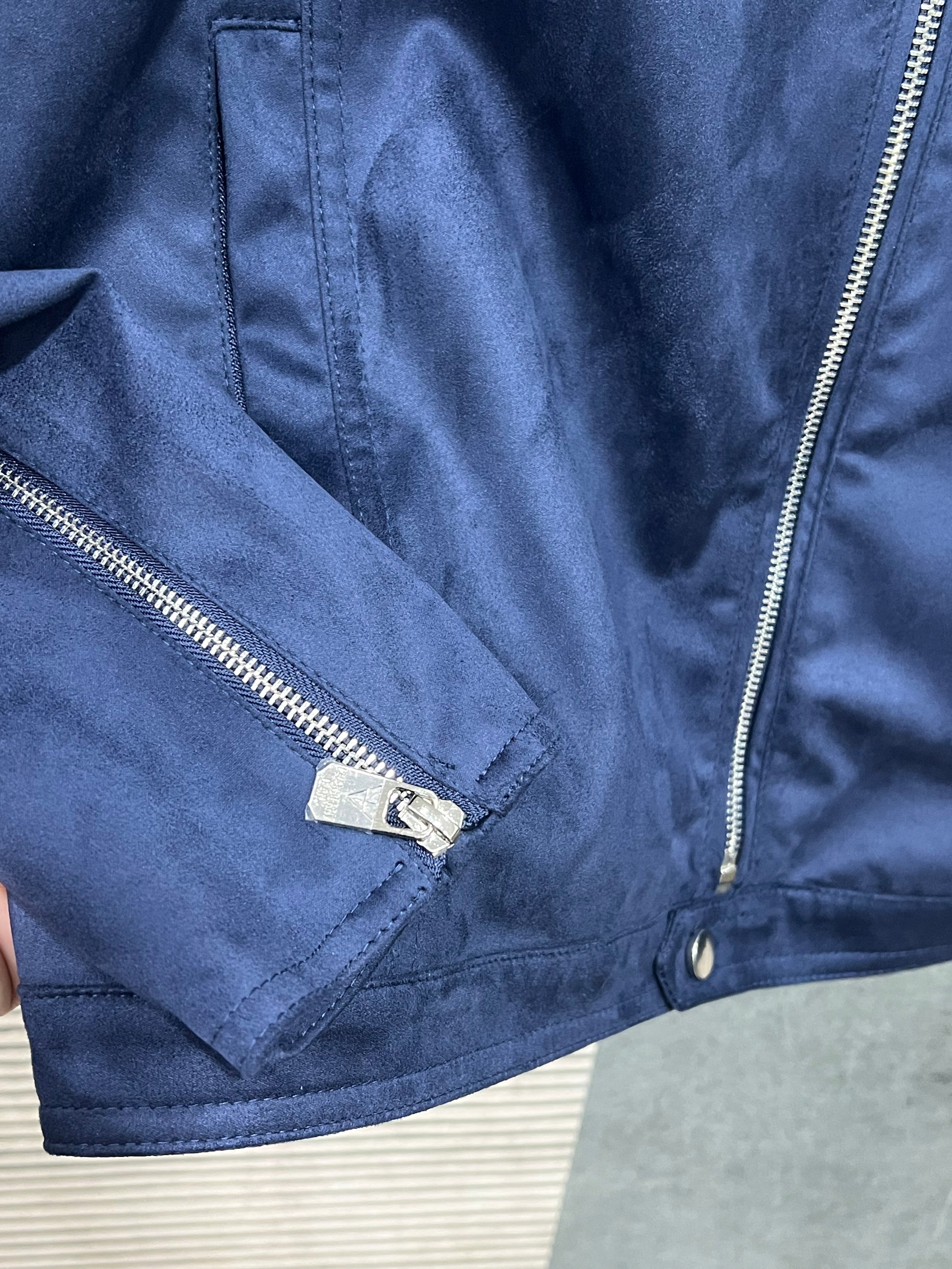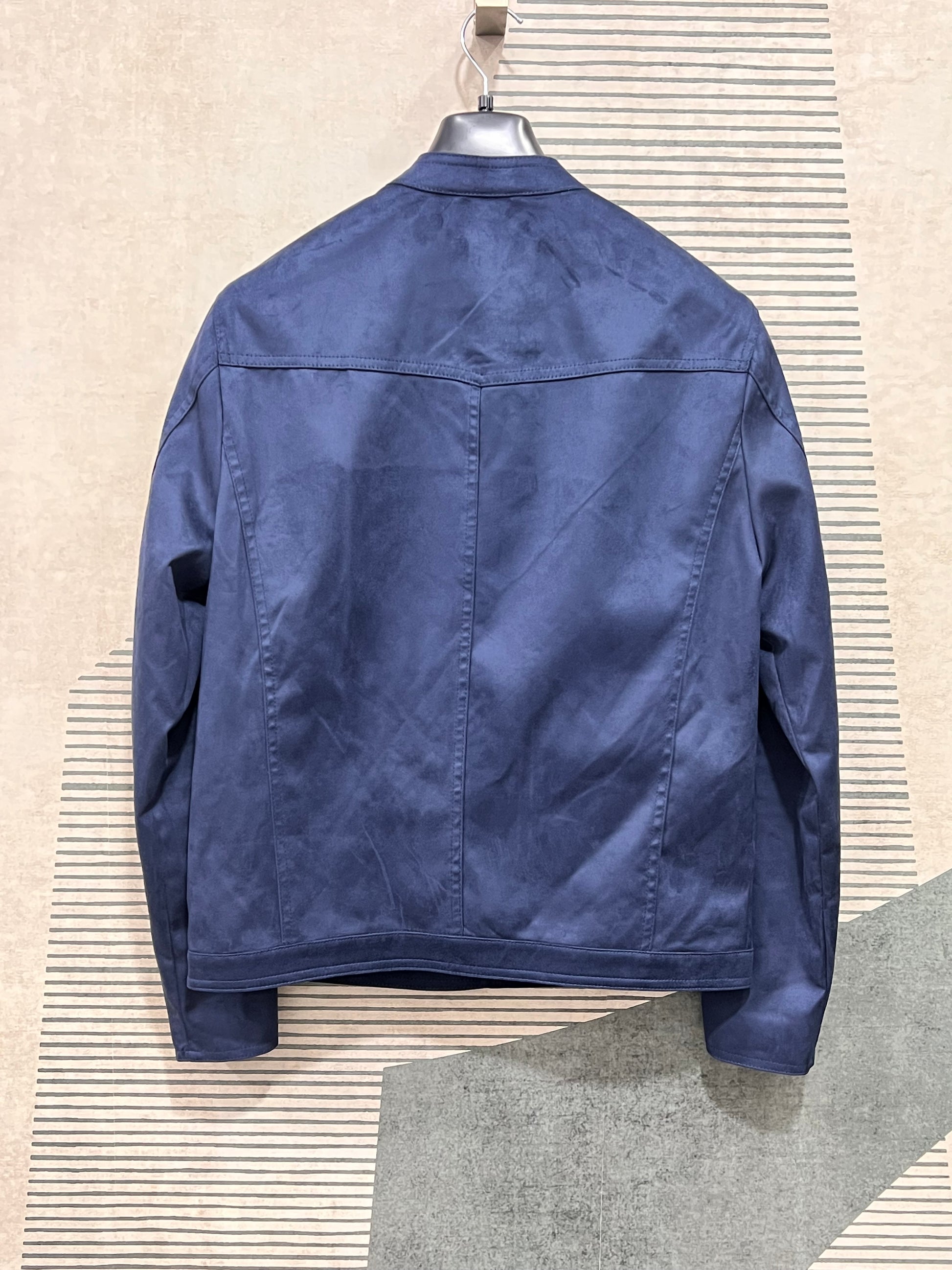 Giubbotto uomo leggero, manica lunga in eco daino, chiusura zip frontale, collo coreana con clip.